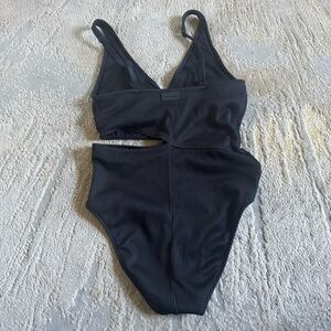 Fabletics One Piece black Swimsuit bathing suit Asymmetrical Cutout medium new
