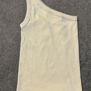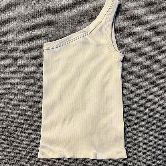 Stylish one-shoulder ribbed tank. Perfect for versatile wear. Modern and sleek design. Material is thick with stretch.
