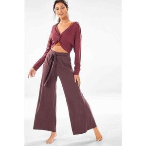 Fabletics Pants Chris Washed Tricot Trousers Flare Leg Bow Belt Size XXS