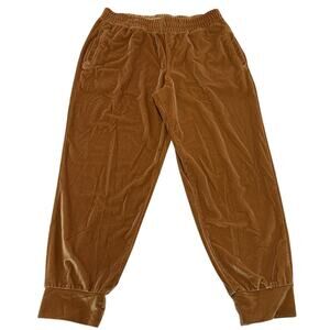 Fabletics Pants Womens Medium Orange Velour Joggers Elastic Waist Pockets Cuffed