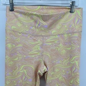 Fabletics Pink and Yellow Swirl High Waisted Capri Leggings Size Large