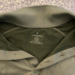 Size L, green men’s polo from fabletics. Bought for my husband but too small. Athletic material and perfect condition