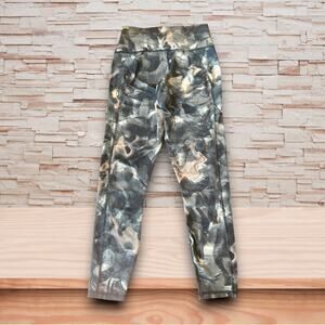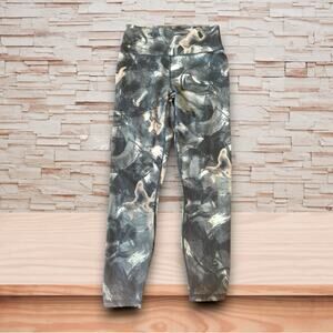 Experience the perfect blend of style and comfort with these Fabletics leggings, featuring an artistic floral design in gray and green tones. The form-fitting silhouette ensures a flattering fit, making them ideal for both workouts and casual outings. Elevate your activewear collection with this unique and elegant piece.