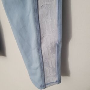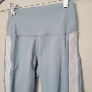 Fabletics Powerhold Baby Blue Logo Stripe Athletic Leggings