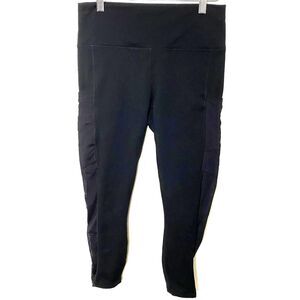 Fabletics Powerhold Black Ruched Leggings Mesh Detail Stretchy Activewear