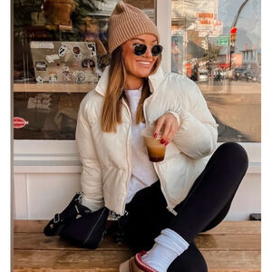 Fabletics Puffer Wander Cropped Womens Jacket Size XXL color: Egret NWT