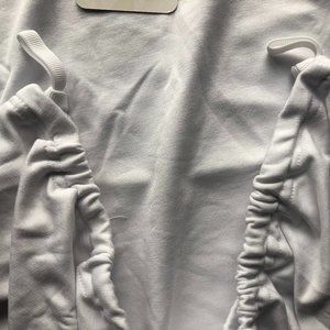 "Made with new, ultra-soft tech terry fabric, this silky-smooth pullover has a high-low silhouette that's completely adjustable-thanks to elastic loops built into the hem so you can customize fit and shape."