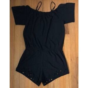Fabletics Pure Black Short Romper Cutout details Cold Shoulder Size Small