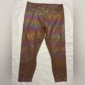 Fabletics PureLuxe High Waisted Brown Iridescent 7/8 Legging in Iridescent Mocha. Made to shine, our all-over iridescent foil print shimmers like no other in our sleek, stylish leggings. Features an internal waistband pocket for your key or card! Chafe-Resistant and Moisture-Wicking. Size XXL.