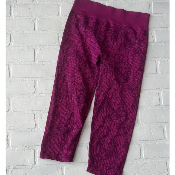 Fabletics Purple Fuschia Floral Compression Capri Leggings Yoga Pants-sz S