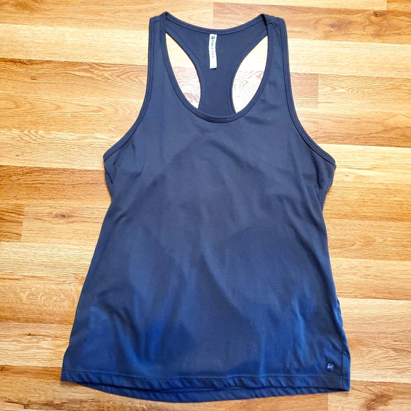 Fabletics black racer bank tank. Gently used. Please see photos for measurements.
