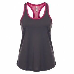 This workout tank is by Fabletics. It is a size small. It’s gray with magenta mesh. It’s in EUC with no holes, stains or tears.
