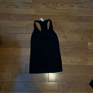 Sleek and stylish black racerback top for any fitness class or lounging in leggings.