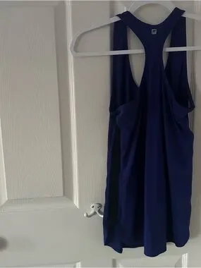 Lightweight blueish purple racerback tank. Mesh side paneling. Classic scoop neckline. Perfect for layering during workouts.