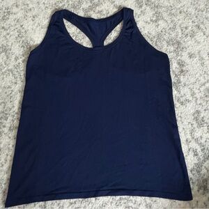 Fabletics Racerback Workout Tank Collegiate Navy Blue Size: Large