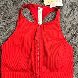 Fabletics Red Zip-Front Swim Top