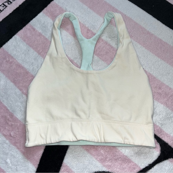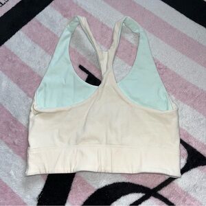 Fabletics reversible racerback sports bra. One side is cream and the other mint green. No padding.