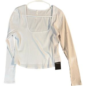 Fabletics Ribbed Square Neck Top Women’s XXL 1X NWT Long Sleeve White Stretchy