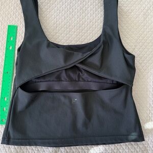 Cute cut out in the back. Stylish black ribbed tank top. Perfect for casual wear.