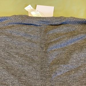 NWT Fabletics Kathie Ruched Back long sleeve top. Super comfy, breathable, movable. Moisture wicking. All-way stretch. Move-easy seamless fabric. Fitted silhouette. Size small. Measures roughly 16” from armpit to armpit. 20” sleeves from armpit to end. 23” from top of collar. Long airy sleeves, gray, ruched back. Sleeves have rivets for air flow and fashion statement along with thumb holes. Rayon/Nylane/Elastane.