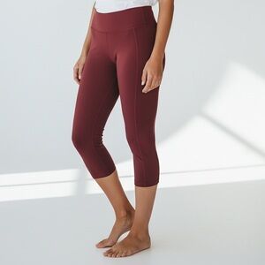 Sleek maroon capris for active days. Comfortable and flexible fit.
