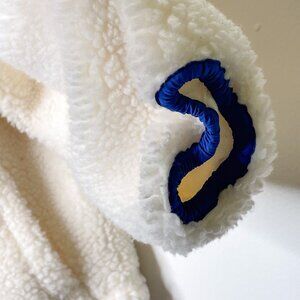 Fabletics Rylan Faux Sherpa Jacket 2X Cream Blue Pocket Zip Teddy Fleece Cozy