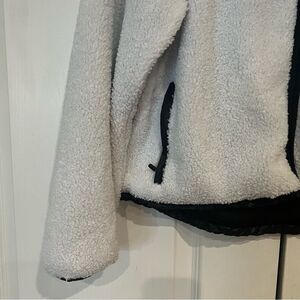 Fabletics Rylan Sherpa Full Zip Jacket. Women’s size Medium. Ivory Bone w/ Black pocket, stripe and cuff piping. No holes/tears/rips. Cat free and smoke free home.