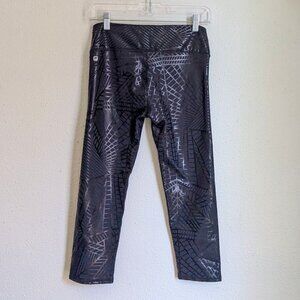 Fabletics Salar Capri Leggings | S | Shiny Black Geometric | NWT