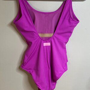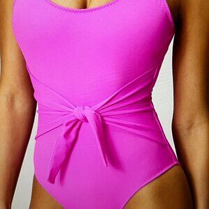 Fabletics Scoop Tie Back Shaping One-Piece Swimsuit Pink Escape Size S