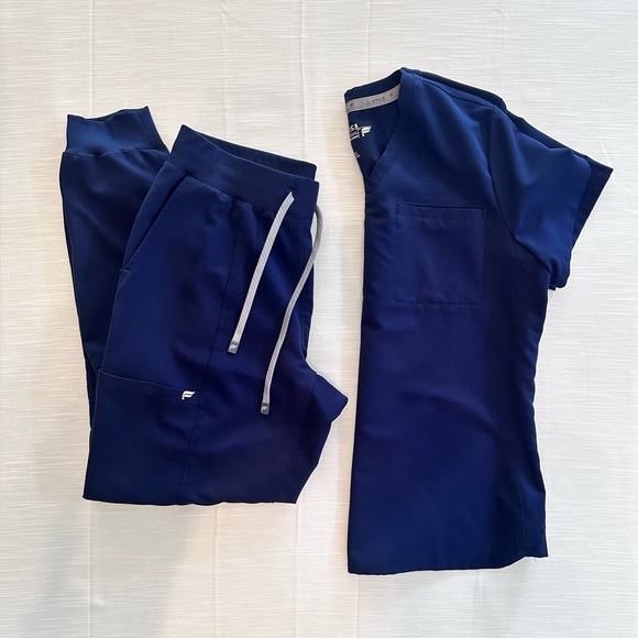 Women’s jogger pants, one pocket scrub top. Navy blue color, size medium. Excellent condition.