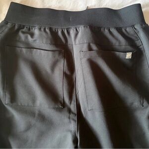 Sleek and stylish black V-neck top. Features short sleeves and practical pockets. Joggers also have multiple pockets including a zipper pocket. Excellent quality. NWOT