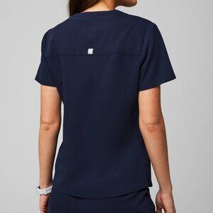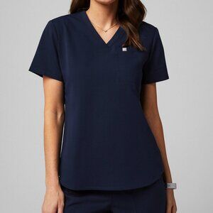 This stylish two-piece navy scrub set includes the Fabletics Vital 1-Pocket V-Neck Top and the On-Call Jogger Pants — the perfect combo of comfort, stretch, and sleek style for healthcare pros.