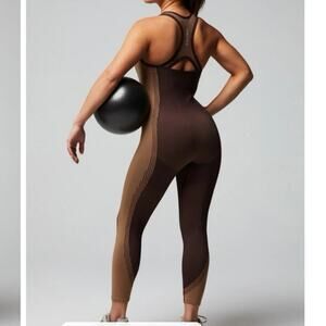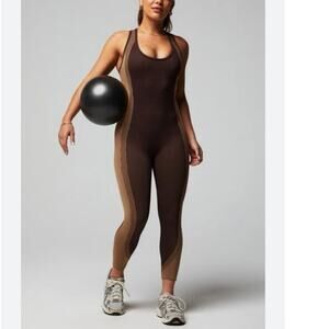 Fabletics Seamless Fusion 7/8 Jumpsuit Cacao Quicksand Cream Froth XXS