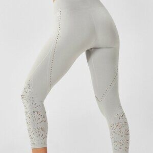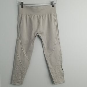 Seamless High Waisted Capris. Breathable. 4 way stretch. Size Medium. Wide waistband. Inseam 21" Light gray. Stretchy. Perforated deatiling. No flaws. Smoke Free. One day shipping.