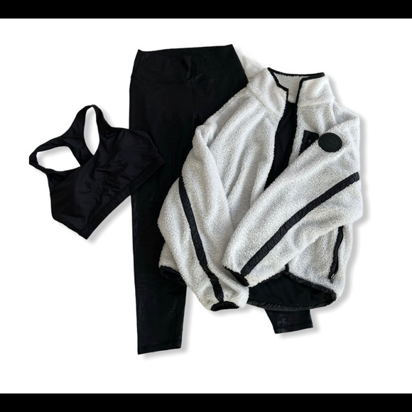 Fabletics set. Sports bra, powerhold leggings and jacket. Worn only a handful of times. Like-new condition.