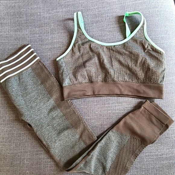 Cute teal and gray Fabletics set. No flaws, worn maybe 2 times. Size tags cut out but I wear a small.
