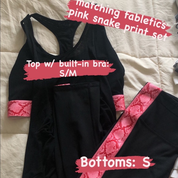 Fabletics matching pink snake print workout set! Too had built-in sports bra and bottoms include an adjustable string in the waistband. Hardly worn, basically brand-new quality.