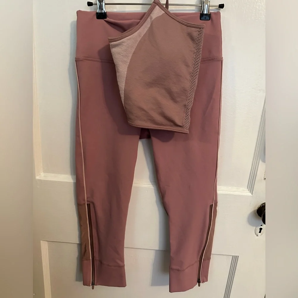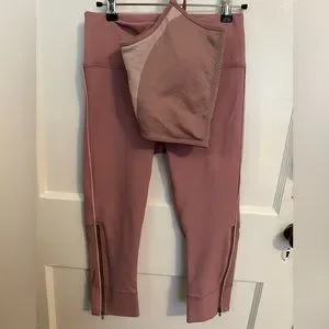 Bottoms never worn. Matching top has been worn a few times. They’re both pink and in great condition.