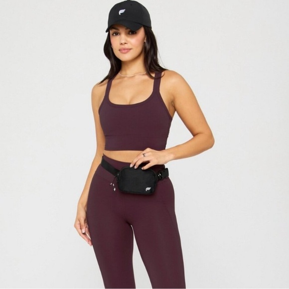 Experience comfort and style with this burgundy sports bra and leggings set. Perfect for workouts or casual wear. oxblood luxe Sports Bra and Leggings