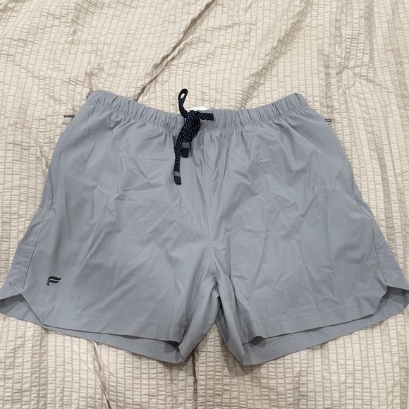 Comfortable gray athletic shorts with a drawstring. Perfect for workouts or casual wear.