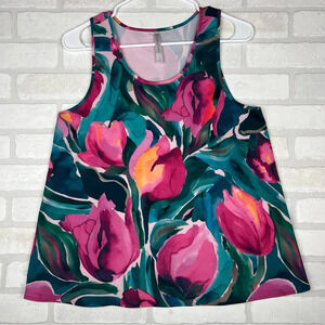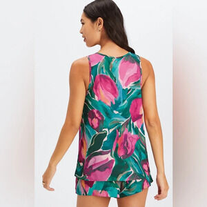 Fabletics Sleepy Tack in Painted Tulips, Size Small. Vibrant color, super soft. This breathable tank made from our new, silky-soft EcoSatin fabric has ultra-lightweight comfort for a luxurious sleep. A few tiny flaws that are hard to see. 52% Polyester/48% Recycled Polyester, Imported. 17” chest, 23” length. #671