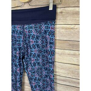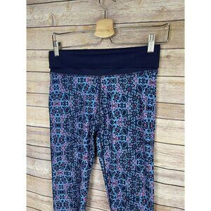 Fabletics Small Salar Geometric Cropped Leggings Blue Pink Patterned Foldover
