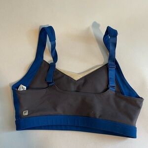 Fabletics Small Sports Bra Adjustable Straps Mesh Sweetheart Neckline Gray Blue.