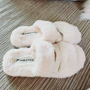 Fabletics Snug Strap Slip On Faux Fur Slipper in Oat, Size 9. Pre-Owned, Great Condition.