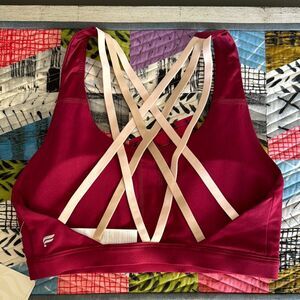 Fabletics Kessler Medium Impact Sports Bra Sz XS NWT Cherry Burst/Multi, Removable Pads, Criss Cross Straps