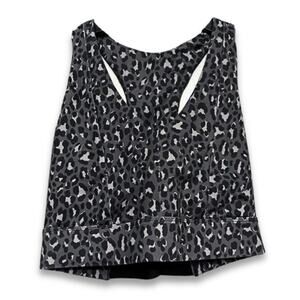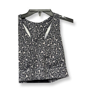 Fabletics Sports Bra Leopard Print Cut-Out Racerback Pullover Black/Gray W XS