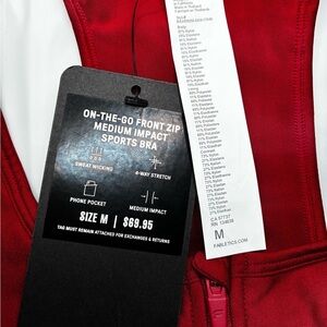 Fabletics Sports Bra Size M Red Zip Front High Impact Racerback On-the-Go NWT