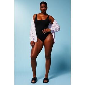 Fabletics Sunset Scoop One Piece Swimsuit Womens Medium Black Square Neck