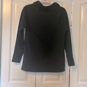 Turtleneck/ funnel sweater from Fabletics. Zip up back with extra long zipper handle (so you can do it alone), size medium, black sweater. Excellent condition, great for post workouts, thumb hole on the sleeve and front pocket.