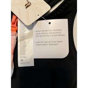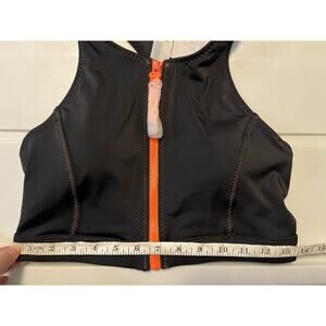 New Fabletics Swim Top Womens Medium Black Orange Zip Front Racerback Sports Bra. New with tags condition, no flaws. See pictures for measurements. Offers and bundles welcome.